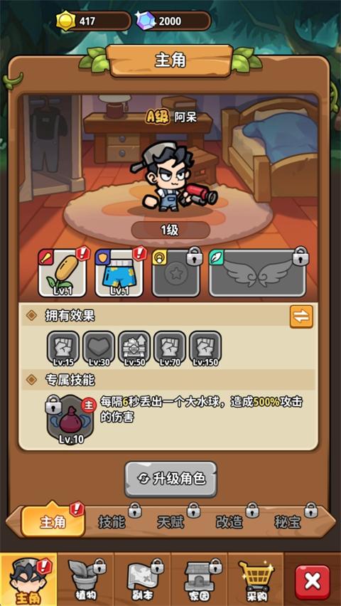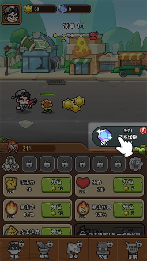 打败敌人,每抵御一波敌人都会获得相应的金币奖励,玩家可以用这些奖励去对植物的属性进行升级,通过植物的搭配、战斗时的阵型,保护这片植物园。