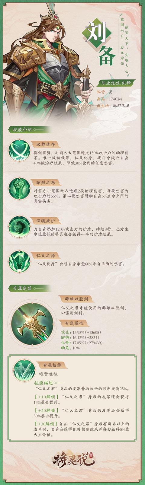 将灵刘备是蜀国统领,为人弘毅宽厚,知人待士,拥有众多良将相随。