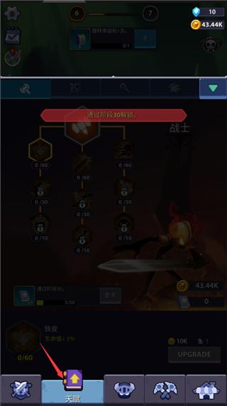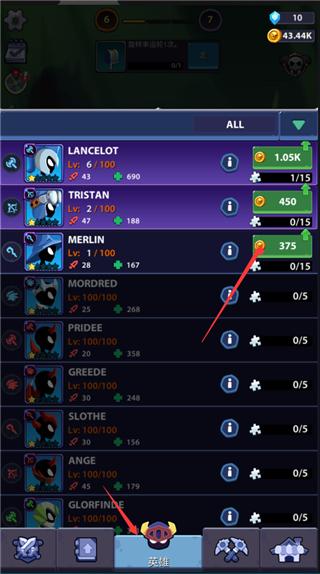 6、点击下方的英雄选项,还可以解锁已满碎片的火柴人,并且还可以在这里升级火柴人;
