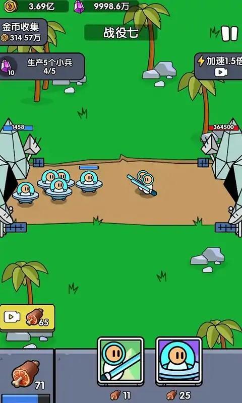 1、只需疯狂点击屏幕,扩充士兵保卫基地,便可轻松提升自己的时代。