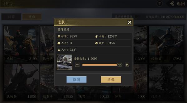 ⑦遣散士兵:遣散士兵会返还一定的资源,不是急缺的话没有必要