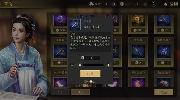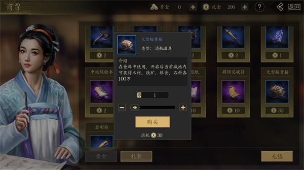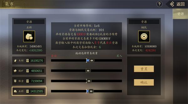 ⑧内政-贸易购买:在贸易中可以用铜钱和礼金购买想要的城外资源