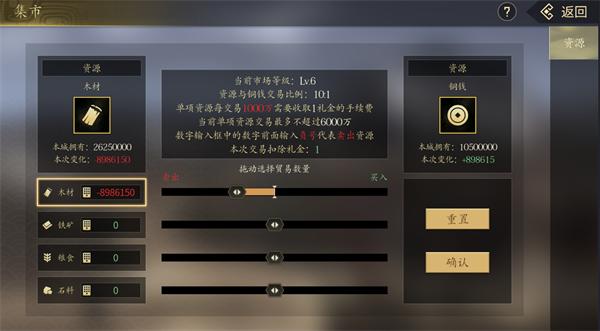 ④出售资源:出售各种城外资源也可以转换为铜钱