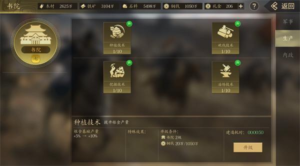 ②升级科技:可以通过升级科技-内政中的税收制度提高铜钱的产量