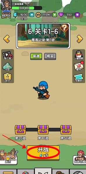 启动超幸运塔防游戏后,点击“开战”按钮进入游戏。