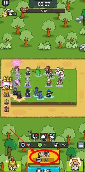 在战斗开始前,玩家需要召唤人物来组成防御阵容。