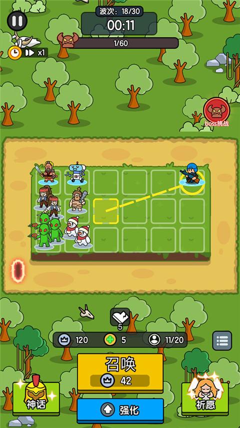 提升他们的属性和技能逃他们变得更加强大,通过不断升级你可以提升英雄的等级和召唤概率,在规定时间内打败BOSS即可获得胜利。