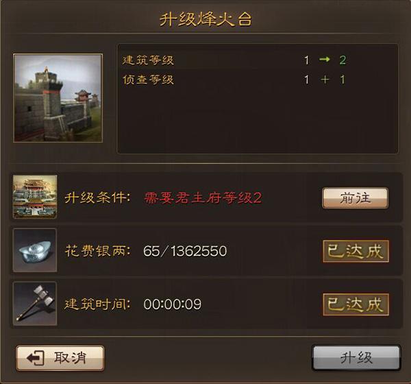 战争的核心在于侦查与反侦查,古语有云:知己知彼百战不殆,这句话也侧面论证了侦查与反侦察的重要性,在三国连环战里面也有侦查与反侦察的策略,想详细的了解他人的信息或者想隐藏实力一鸣惊人的,不要犹豫,尽可能的多提升烽火台的等级吧!但是对于我这种种田玩家,我会把烽火台放到后面升级,毕竟省下的银两用来提升君主府的等级更划算