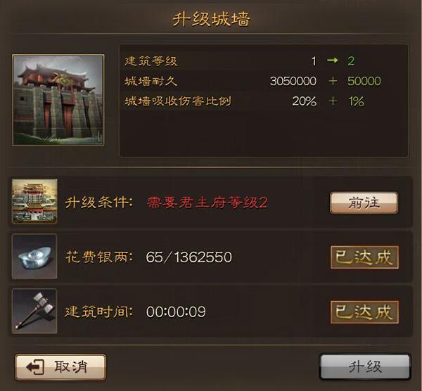 起初对于城墙耐久这个词汇我是不明白的,但是常年混迹论坛的一个哥们告诉我,被人打的时候,城墙才会有作用,他会分摊你所受到的伤害,升级城墙相当于提升了己方的生存力。如果是这样,我会选择升级城墙并且尽可能提高城墙的等级毕竟升级城墙比弄装备更划算