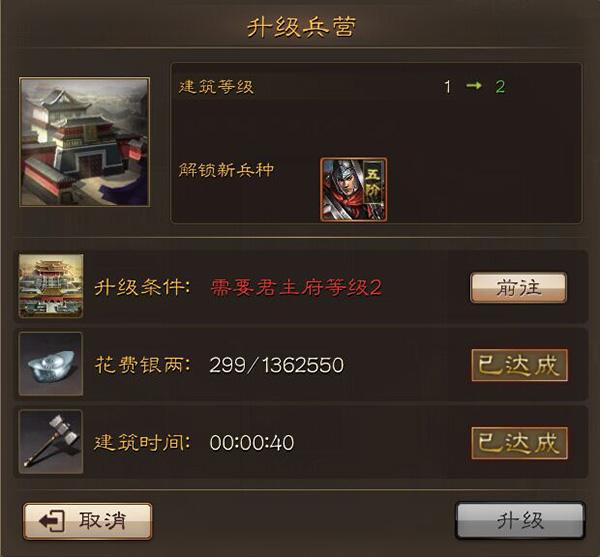 为什么你的兵会比别人招的慢?为什么别人有的兵种你没有?那是因为别人的兵营等级比你高!大部分兵种都存在明显的克制关系,当别人的兵种完全克制你的时候,你就等着死兵吧!所以尽可能的提升兵营等级是可以解锁更高级的兵种,在战场中就会有更多的优势
