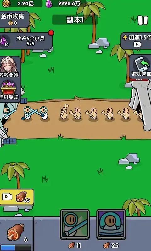 1、只需疯狂点击屏幕,扩充士兵保卫基地,便可轻松提升自己的时代。