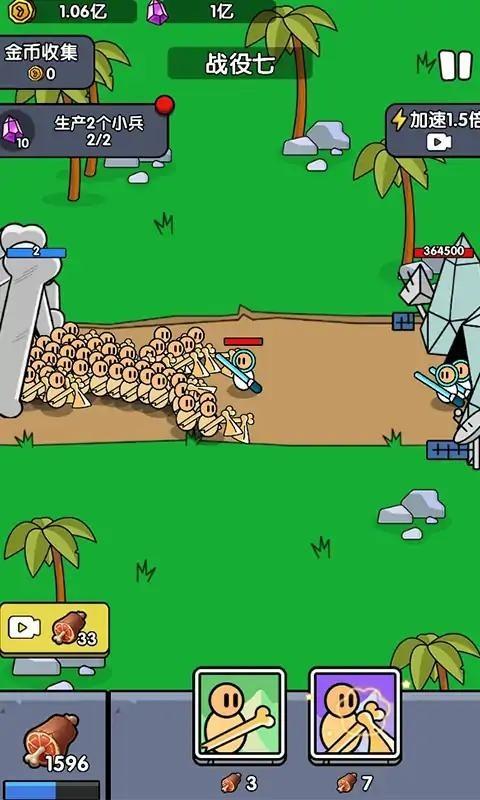 1、打造属于自己的军团,招募、培养火柴人战士,形成属于自己的强力战队。