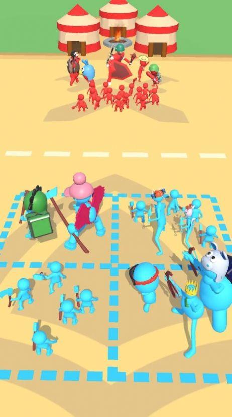 1、你只需通过点击和放置火柴人战士来组建军队,然后指挥他们与敌人进行战斗;