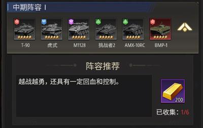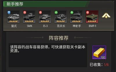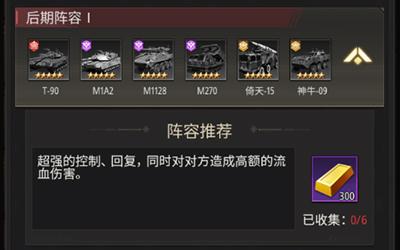 推荐理由:这套阵容中的战车玩家们在开局的时候都是很容易就可以获得的,在前期玩家们开荒来说是非常合适的阵容了,阵容的强度也是非常的不错,许多大佬玩家都在前期过渡的时候使用,能够帮助玩家们快速获得游戏副本的游戏资源。