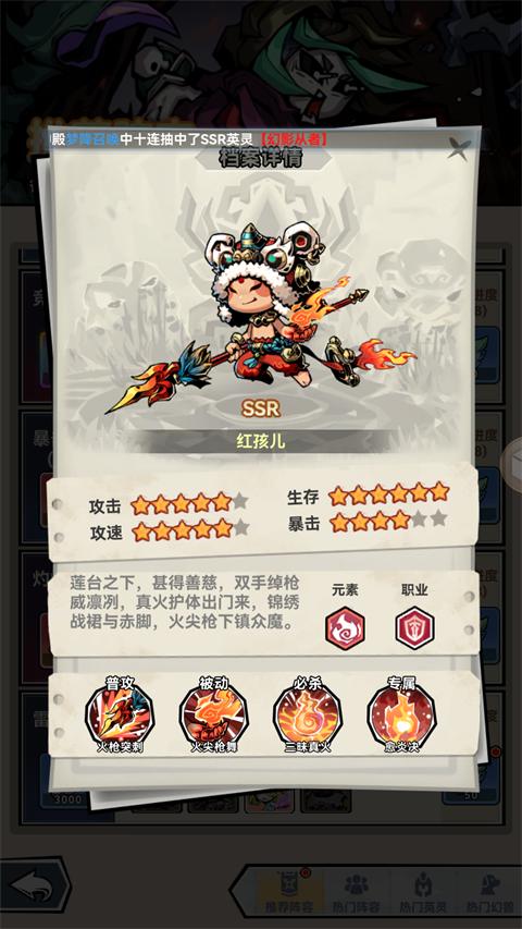 英灵有着不同的职业属性,职业之上又有不同的技能,各有千秋,独具特色。英灵本身也颇具个性,小红帽露出獠牙手握斧头;红孩儿虽萌,但惹怒他三昧真火跑不了。
