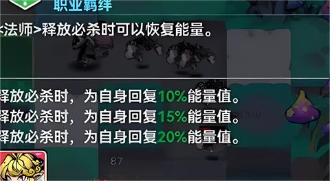 法师羁绊:释放必杀时,为自身回复10%能量值。