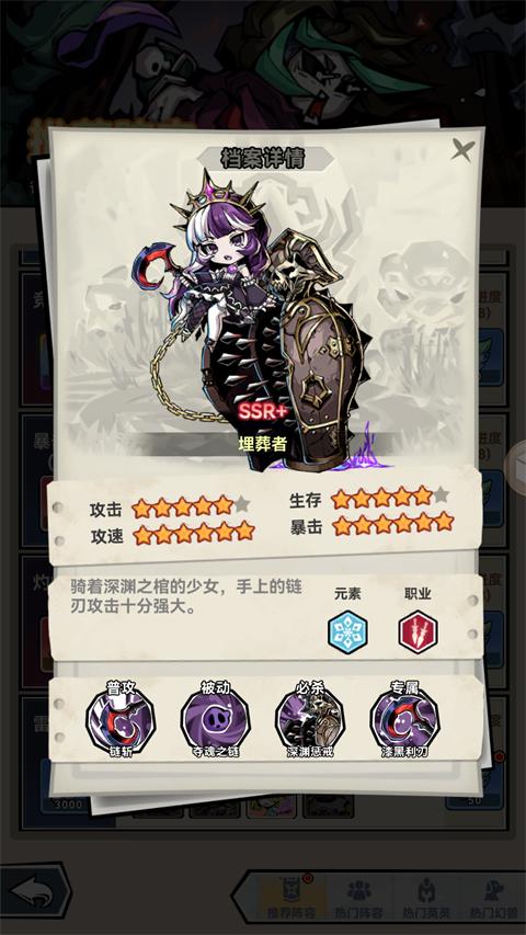 1、属于刺客,使用黑暗元素伤害,对后排敌人进行收割。