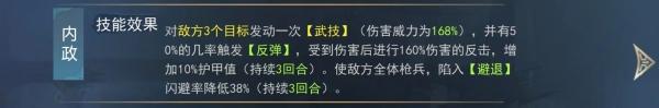 虽然是位女武将,但是她的武力,智力,速度都偏高。而且她的武技〔飒爽枭姬)可以强化普攻伤害,却也十分依赖连击率,在进行普攻后,有30%的概率对敌方发动一次武技,并且武技能减免自身受到的伤害和恢复受到伤害量的兵力,提升持续作战能力。