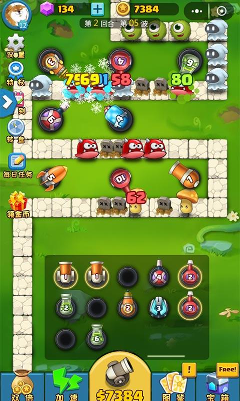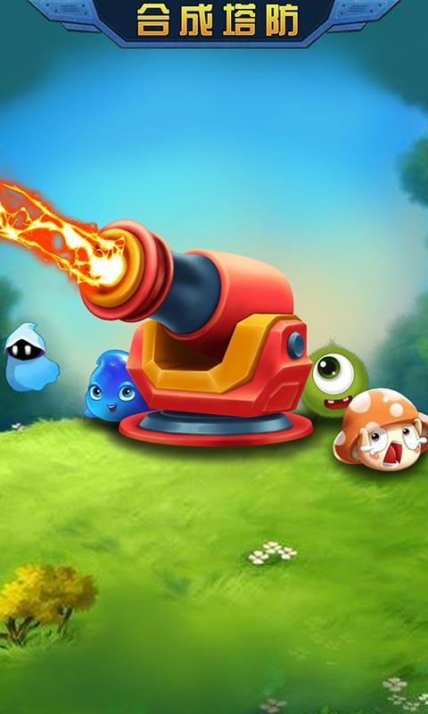 1、一键合成更高级的大炮来抵挡小怪兽的入侵。