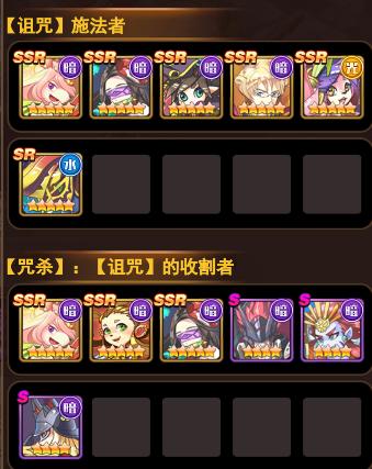 水系SSR刺客卡牌嗷嗷+风系SSR刺客须佐之喵+火系SSR刺客蚩尤+风系SR坦克德古拉+火系SSR控制烛九阴
