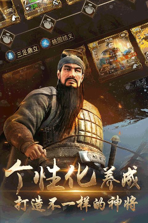 游戏从卡牌到战场极致还原动漫中经典三国武将形象,高清写实的画风才是真正的三国,同时游戏嵌入丰富动漫剧情CG与经典剧情,玩游戏,品三国。