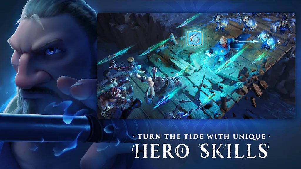 招募精灵少女、憨憨兽人、冰霜法师等万千魔幻种族英雄,搭配主力英雄,训练强力统帅主动技。灵活利用隐身、瞬移、传送、重击、AOE群攻等超强技能,观察战况,精准释放,改变战局,赢得完美胜利!