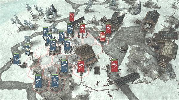 战况2.两股敌人会逐步收窄我方在战况1中的驻守地,右侧的神庙都被抢夺了。然而,占据了两座狮子雕像和右侧的狐狸雕像,在防御来说,能够起到兵员的保障。另外一方面,让受伤的士兵优先吃骨头、狐狸僧人对其优先治疗,保证基本每个士兵都是厉鬼等级。敌人的前后夹击迅速地消耗掉他们的兵员,日暮将军被孤立的形势很快就凸显出来,派出一名士兵引诱其进入我方在上方通路的驻扎地,在狮子雕像的协助底下,击杀日暮!