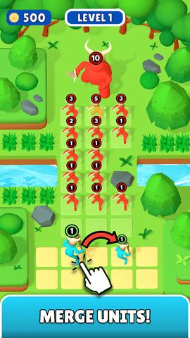 合并战斗挑战是一款精彩有趣的战争策略游戏。指挥你的士兵对抗各种敌人,通过排兵布阵巧妙化解各种困难,以独特的方式获得奖励。整个游戏玩起来比较轻松自由,有很多战役要经历。好好冒险。