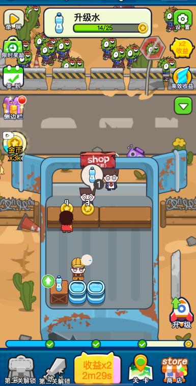 1、根据战场情况制定战术,抵御各种僵尸,展开精彩闯关。