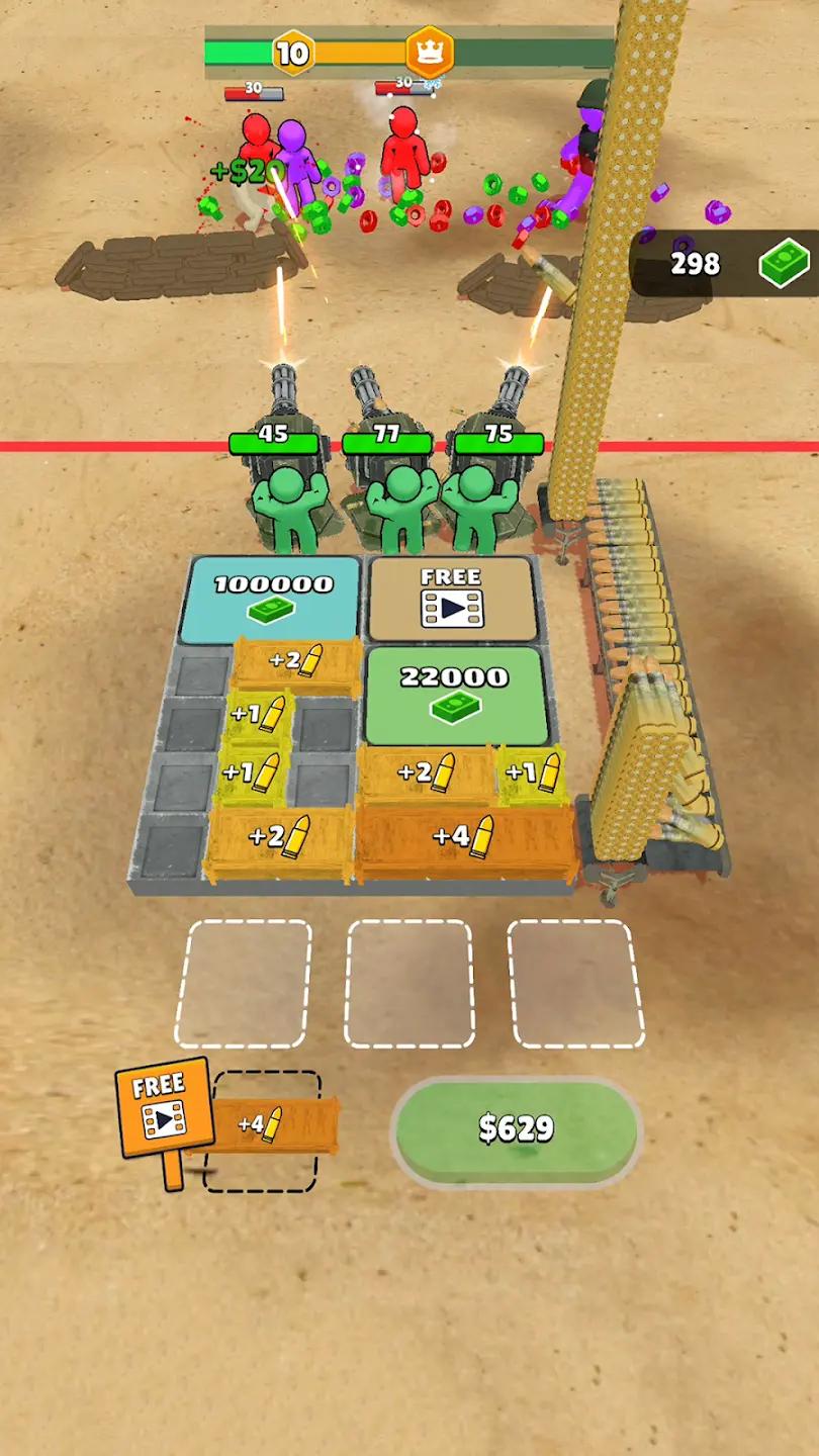 2、合并装有武器的箱子,以升级您的塔枪军队,并为您的机枪获取更大的子弹。