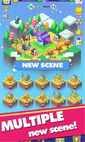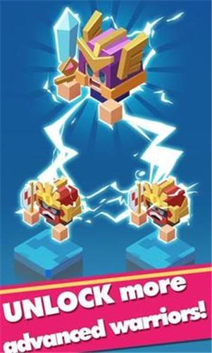 通过合并将勇士进行升级,你要击杀怪物并在挑战中赚钱,打造出了超过50多个不同的勇士角色,你要通过合并和升级获得更高级的勇士,让自己的输出变得更强。