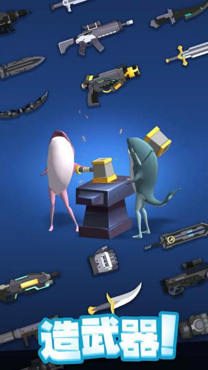 同样的方式,还可以在武器系统里体现,打开武器库,这里有着各种各样的武器可供玩家升级,这些全部在刷怪中能够得到,点击升级武器,一样可以提升咸鱼的战力!