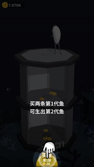 进入游戏,买两条第一代鱼,可生出第二代鱼。