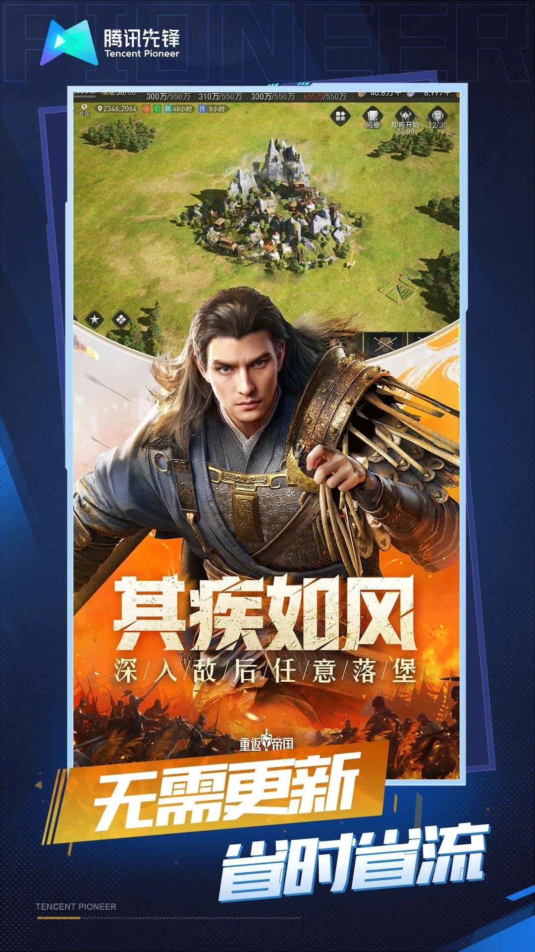 《云•重返帝国》是由腾讯先锋云游戏和《重返帝国》项目组联合发布的云游戏版本。