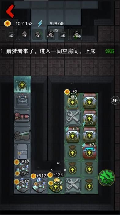 4、升级炮塔提高你的战力,不断消灭凶鬼保护宿舍中的人类。