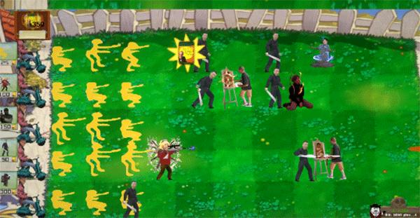 2、可以看到熟悉的植物大战僵尸场景画面,不同的是右侧的僵尸们都变成了全明星。