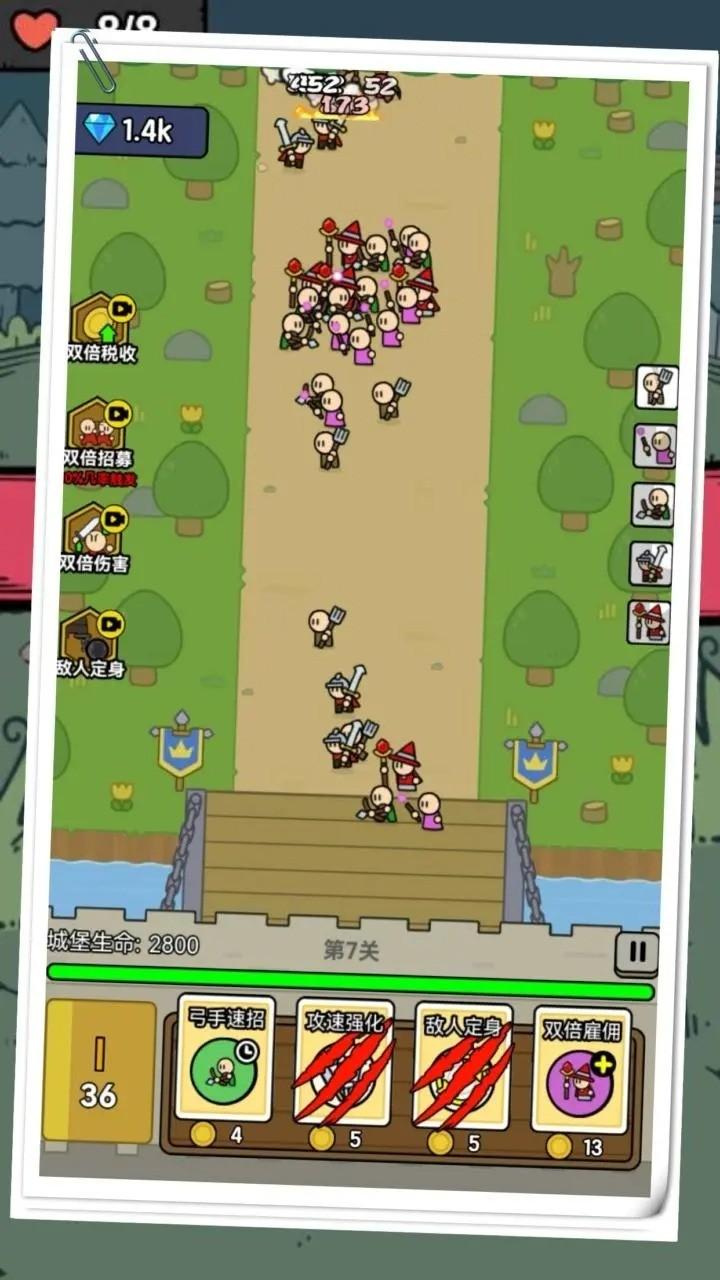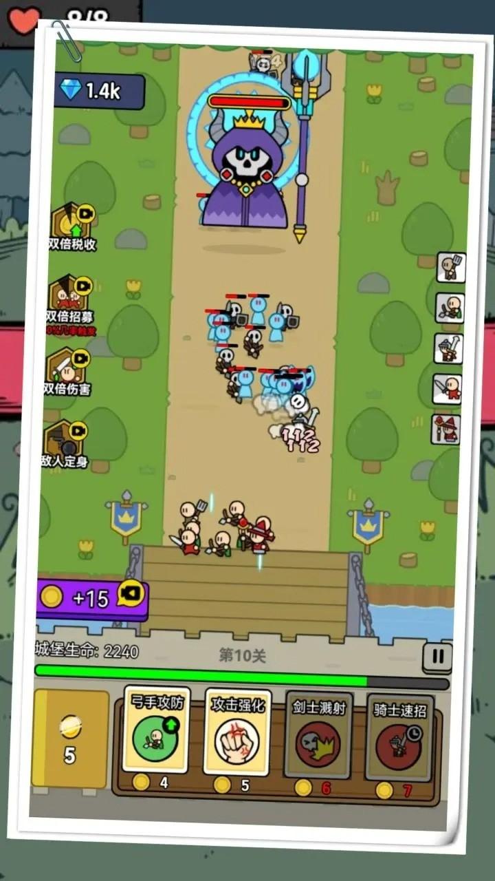 战斗的时候也会获得很多的金币,金币能够升级自己的堡垒、士兵等,想要将游戏全部肝完还是需要很久很久的,适合每天无聊的时候来游戏肝一肝等级。