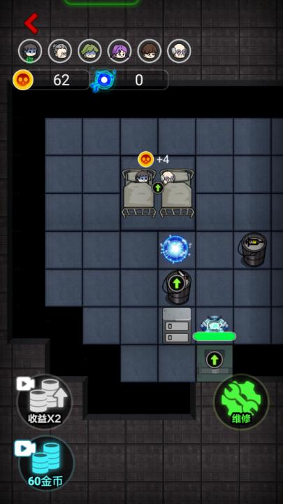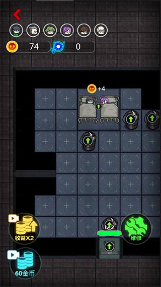 3、升级炮塔提高你的战力,不断消灭凶鬼保护宿舍中的人类。