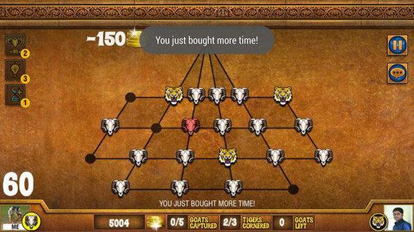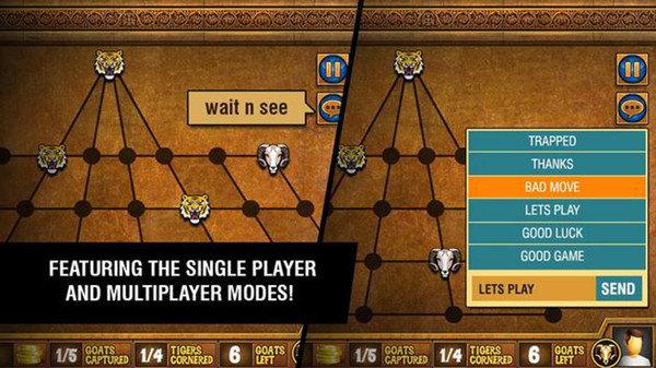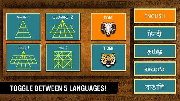 山羊和老虎是一款非常有趣的战略游戏。玩家可以测试自己的策略能力。老虎在棋盘上非常强大,但数量很少,而山羊虽然比较弱,但数量众多。需要利用不同优势的棋牌来体验游戏,与国际象棋或跳棋等常规游戏不同。捕获山羊并将它们从棋盘上移走,而山羊则具有数量上的优势。规则简单易懂,但非常吸引人。拥有4个不同的部分和5种语言,包括4种印度语言可供选择。