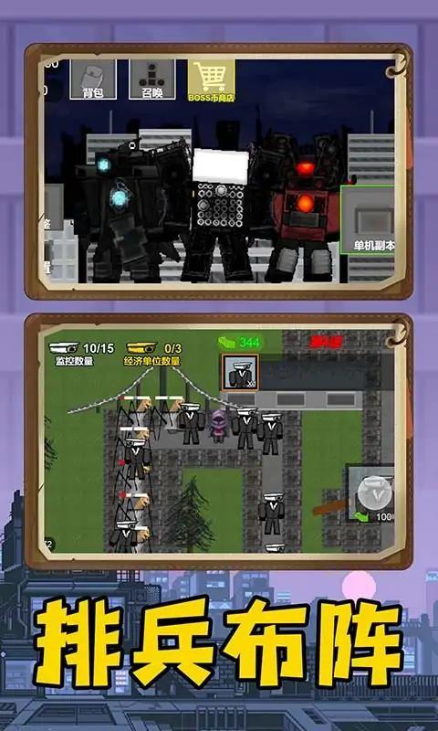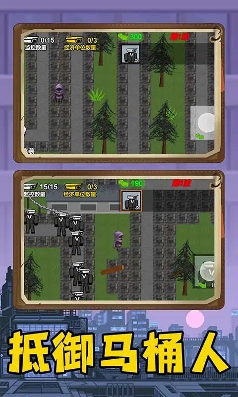 这是一款策略塔防类小游戏,监控人阻止马桶人进攻,排兵布阵消灭敌人,你能坚持多少波次呢?快来闯关挑战吧!