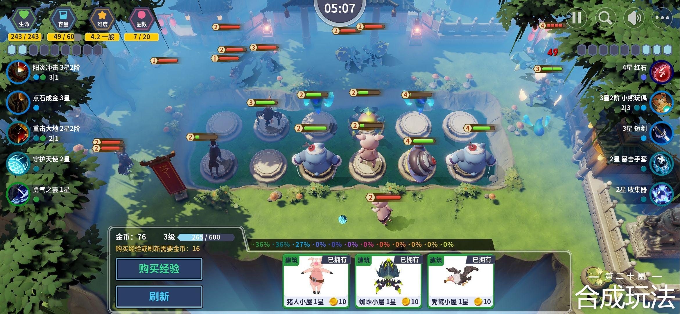 玩家在二十圈内获得资源,培养英雄,打败第二十圈的精英。
