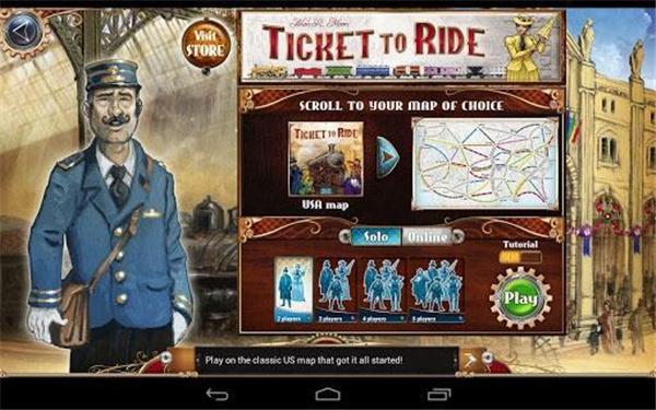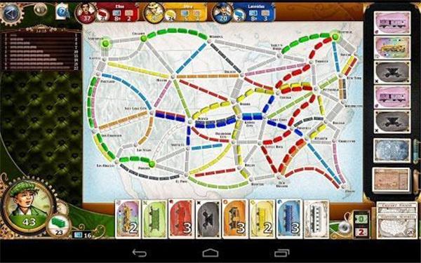 游戏玩法收集不同颜色的火车票,用对应颜色的特定数量火车的车票连接地图上的不同城市以获得积分,以及最后完成的任务路线的分数,赢家就是赢家,玩家还可以进行在线对战。