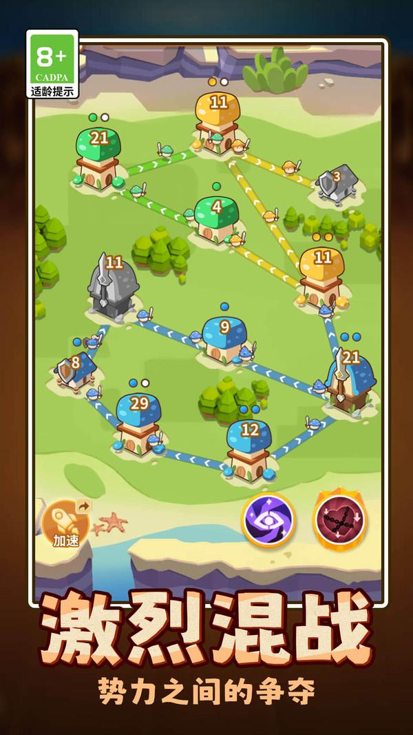 1、有多种不同的兵种,每个兵种都有自己独特的技能和属性,你能够去不断的战斗;