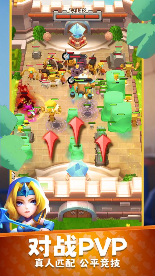 游戏中有数十种不同属性的英雄和士兵,游戏中玩家将扮演城堡统帅,通过各种途径收集英雄和士兵,随机合成升级你的士兵,