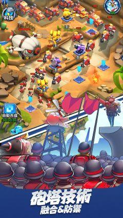 2、合并升级炮塔,有策略的搭配各类炮塔,抵抗不同的敌人。