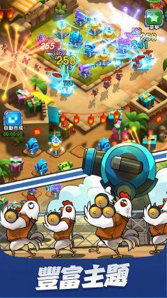 小兵别嚣张国际服是一款休闲与策略兼具的塔防类游戏,英文名也叫Rooster Defense,在次时代的场景与战斗体验下,身为指挥官您要合理布置防御,通过合成并升级炮台,替换场上的战力。游戏内炮台的选择非常多样,机枪、狙击、电磁、瘟疫、冰冻、核弹等,了解并掌握每种炮塔的特殊能力,是通关该游戏的必备条件,只有搭配选择合理,才能将一切来犯之敌阻挡在门外!
