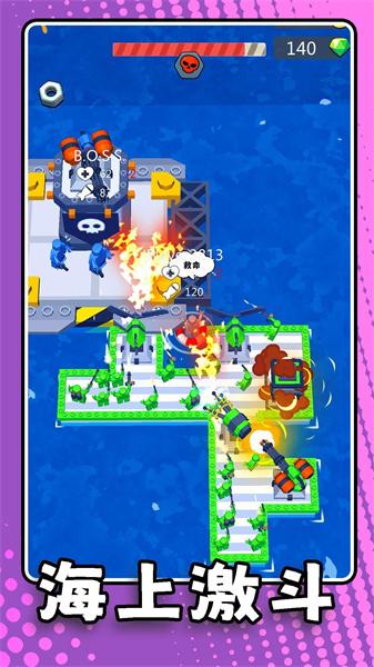 疯狂小兵游乐场游戏玩法多样,玩家可以收集装扮,提升火力扩展自己的领地,探索地图收集珍贵的宝藏,成为汪洋上的霸主。疯狂小兵游乐场是一款值得体验的冒险塔防类游戏。