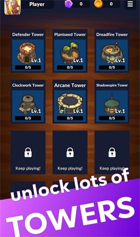 用各种塔和被动技能构建你的套牌。随着您的进步解锁新卡,每张卡都提供独特的策略和组合。