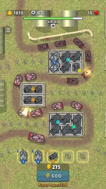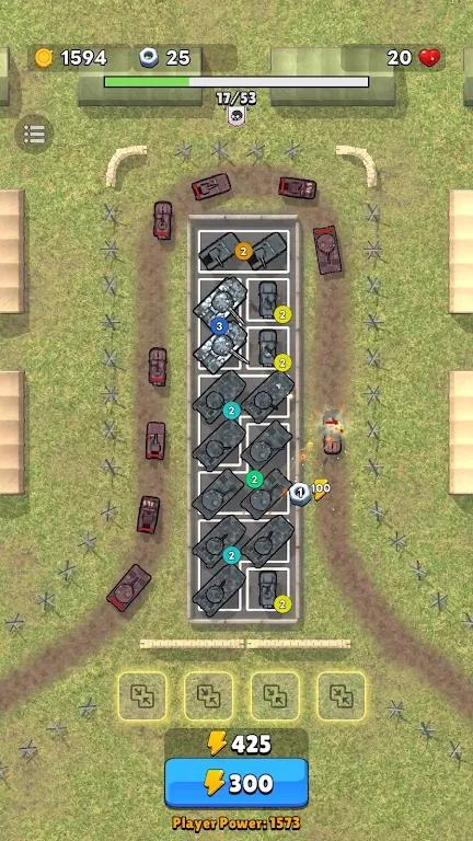 3、并和统治:在这款现代塔防游戏中,合并机制是成功的关键。合并您的部队以创建更强大的军事力量和更耐用的车辆。无论您是升级坦克还是军车,有效合并部队的能力将决定您的防御强度。战争车队不仅仅关乎数字,还关乎策略和效率。将您的部队组合成一支不可阻挡的军队,确保您的基地在每次敌人的猛攻中幸存下来。