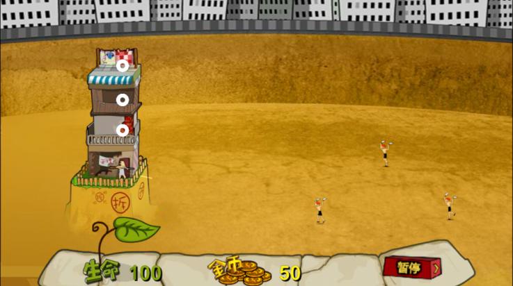 5、房子的生命值是100,每打倒一个敌人可以拿到10金币,想再派一个家丁就得花100金币。